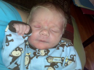Time is flying by! Ryan is mastering his newborn skills. He is nursing like a champ. So well in fact, he gained 3oz in 2 days! The normal rate is .5oz/per day. He lost a touch more weight than what his doctor likes to see so we were watching his numbers closely. My milk fully came in and he is back on track now….phew! He has managed to pee on Daddy a couple of times already but so far has missed me He also has a pretty powerful digestive track! You can hear him farting when you are in a different room than where he is.